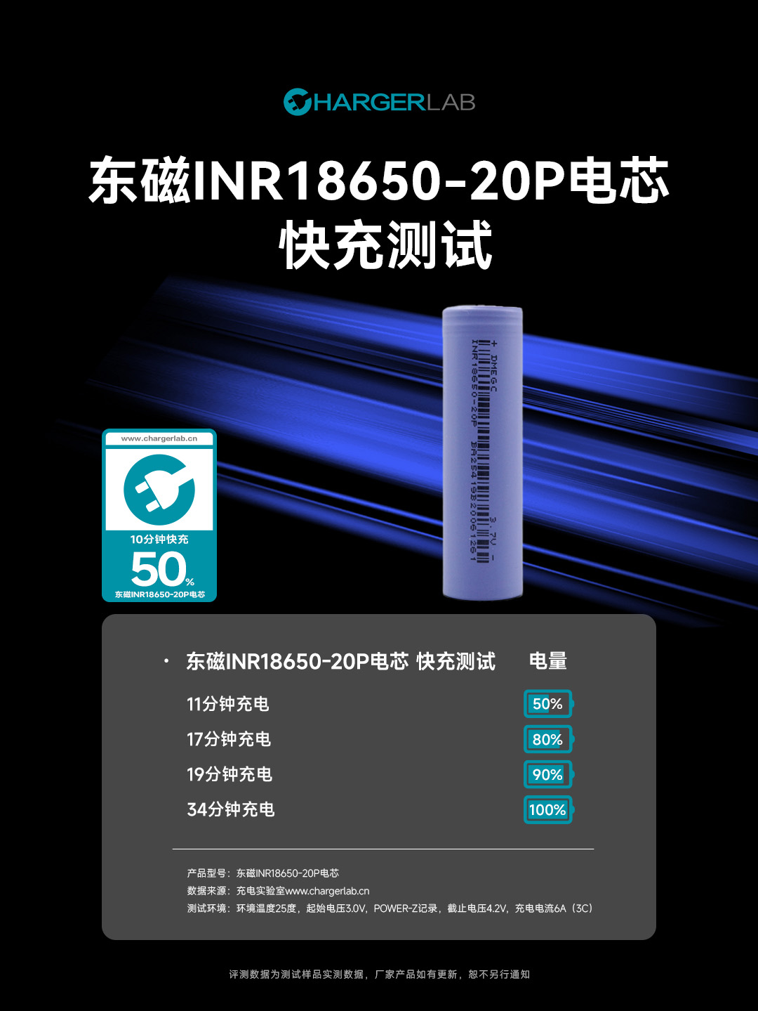 ChargerLAB 实测:东磁 20P 电芯11分钟50%硬核达标