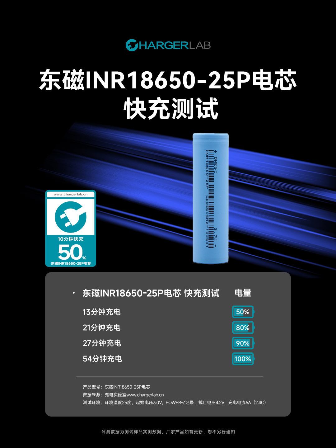 13分钟快充至50%,东磁INR18650-25P电芯充电测试
