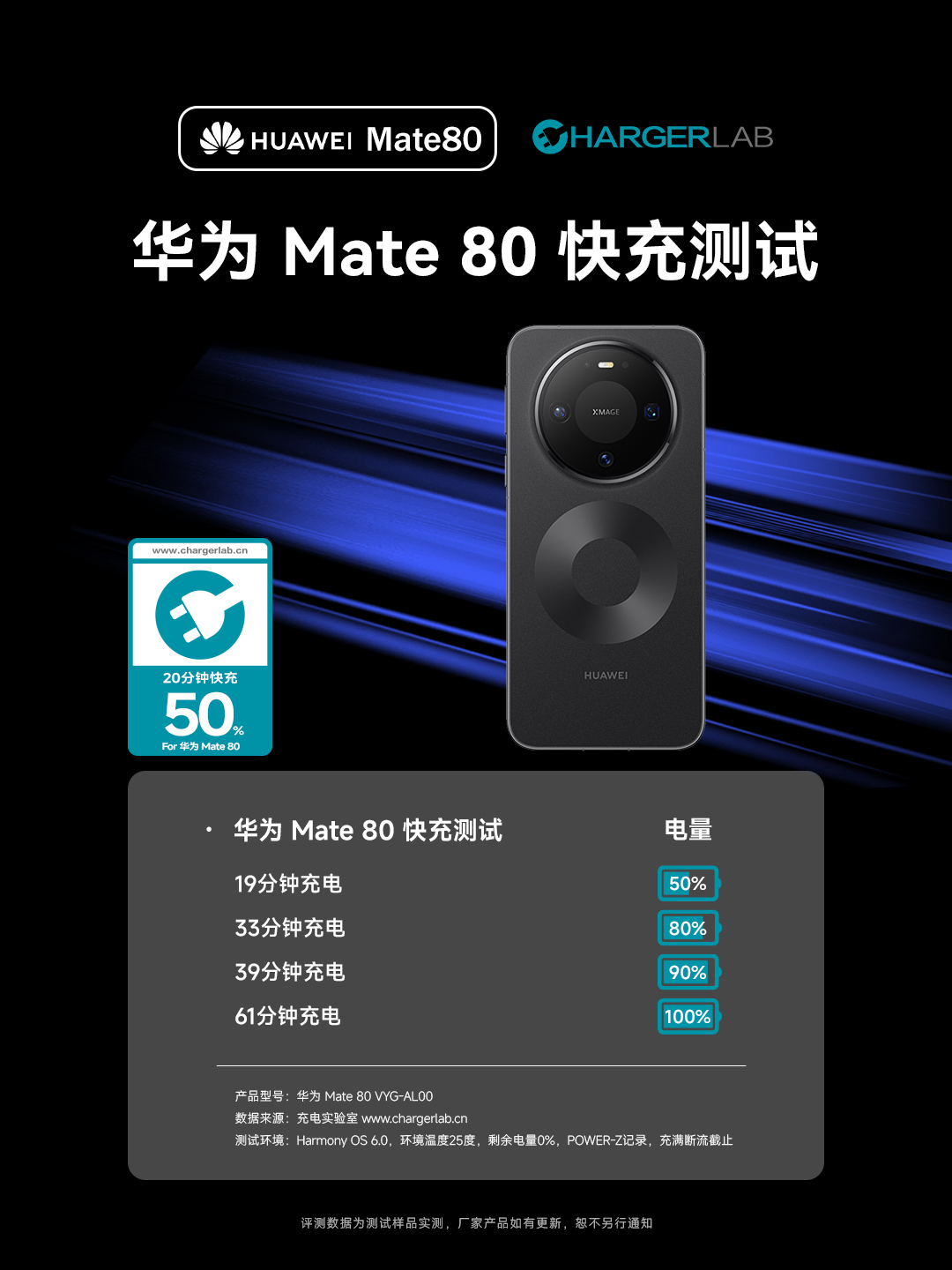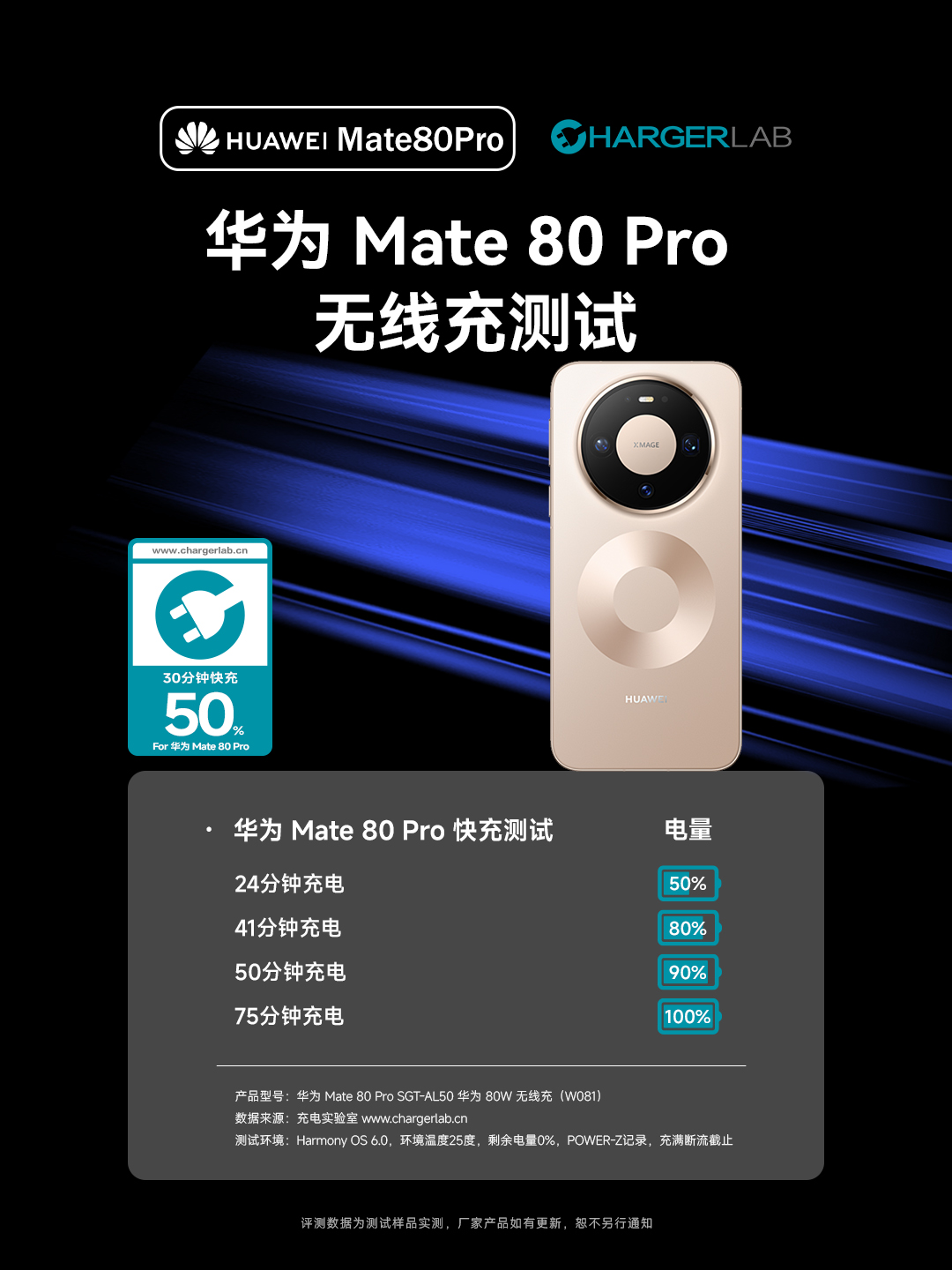 华为 Mate80 Pro通过ChargerLAB充电实验室无线快充测试!