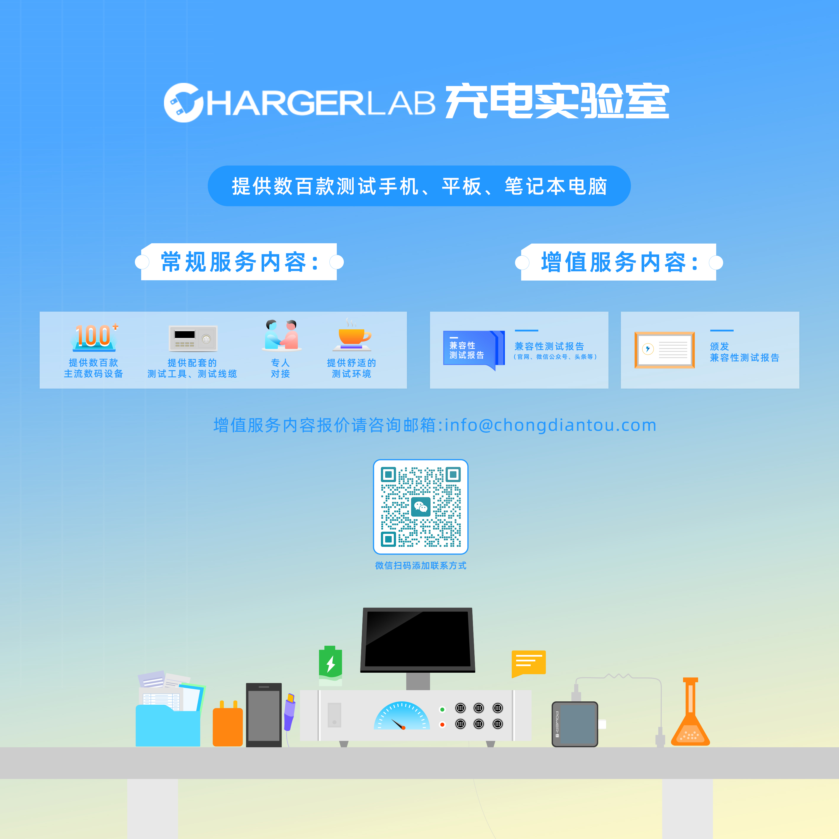 ChargerLAB 充电实验室是专注于充电生态全场景测试的评测机构,面向消费电子领域,提供兼容性、快充速度、待机功耗、续航测试及定制化测试方案搭建服务。可提供上百款主流数码设备,适配多样测试场景;配备配套测试工具与线缆,保障测试精准;安排专人对接,全流程高效沟通;打造舒适测试环境,助力稳定、专业测试开展,以专业服务推动行业发展。