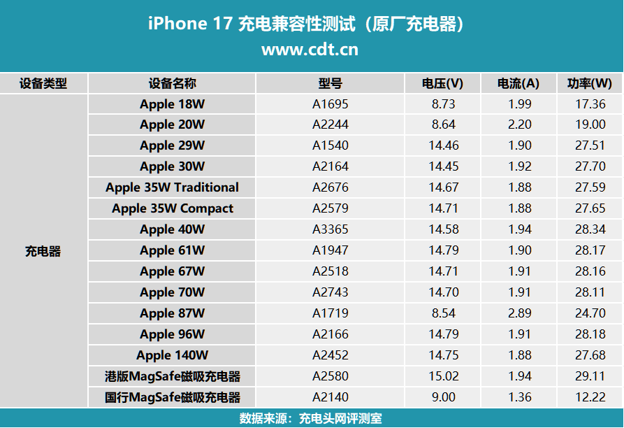 综合本次测试结果,iPhone 17 在充电兼容性方面表现稳定,整体来说,基本握手的都是PD协议,能够适配原厂及第三方充电设备。