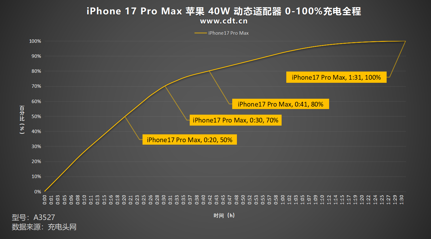 iPhone17 Pro Max充电评测:充电速度显著提升,20分钟充入50%