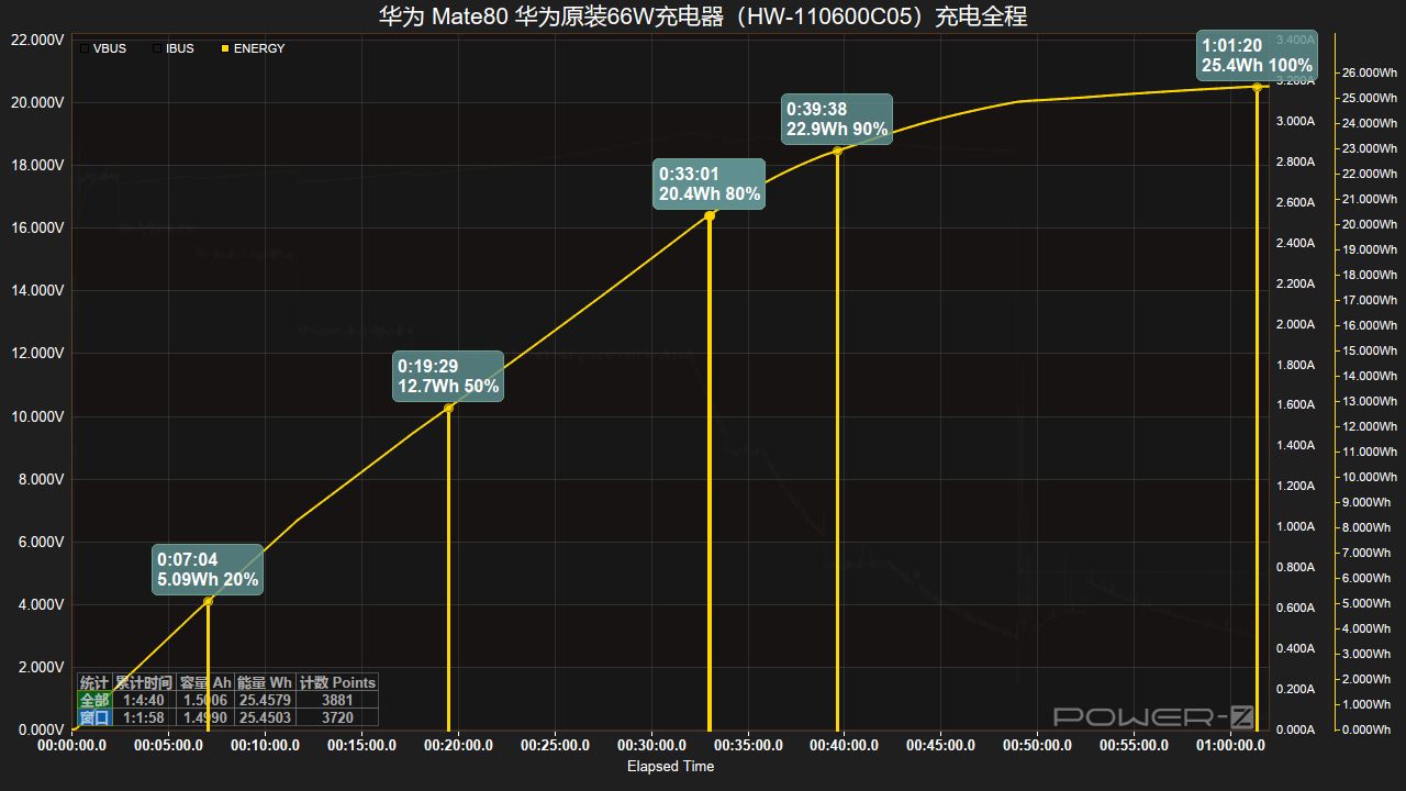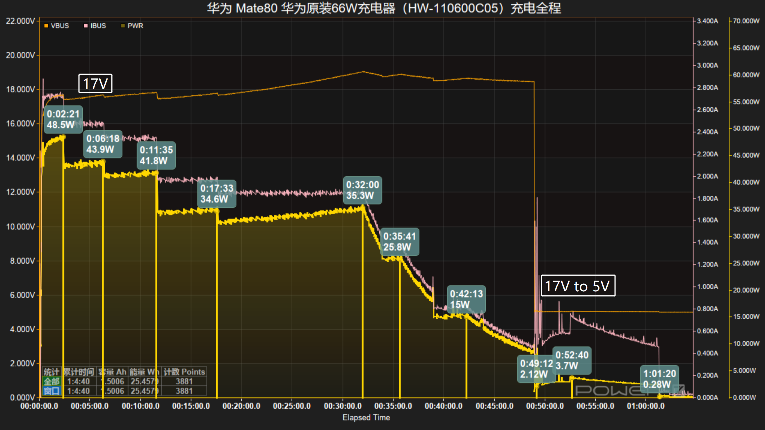 近日,华为 Mate80 通过了 ChargerLAB 充电实验室的2050快充测试。