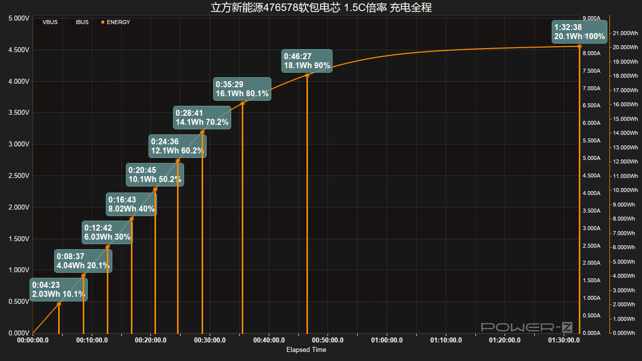 1、20分钟即可回血50%!立方新能源476578-5000mAh聚合物电芯充电测试